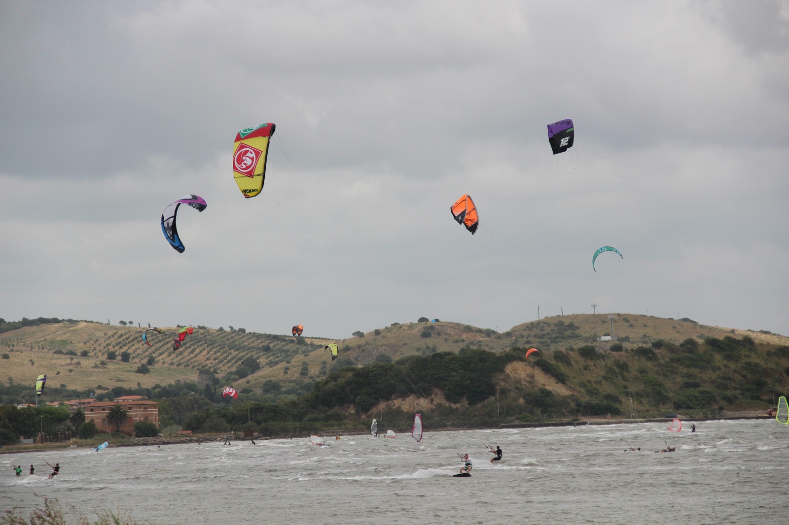 Had a work trip to Italy and was able to get a couple of days of kiting in at Talamone. Pretty cool spot in southern Tuscany on the mediterranean. I was amazed how big the sport is over there. There were between 50-75 kiters and 30-40 wind surfers both days there so you had to have your head on swivel. Wind was nice and consistent and was fully powered on a 12m. I didn't have room to bring my gear so I rented a RRD kite and board. First time using the brand but was really impressed with how the kite performed. It was a huge camping area and most of the kiters were staying next to the beach in their vans or RV's. If anyone heads to Italy, I would highly recommend this place.