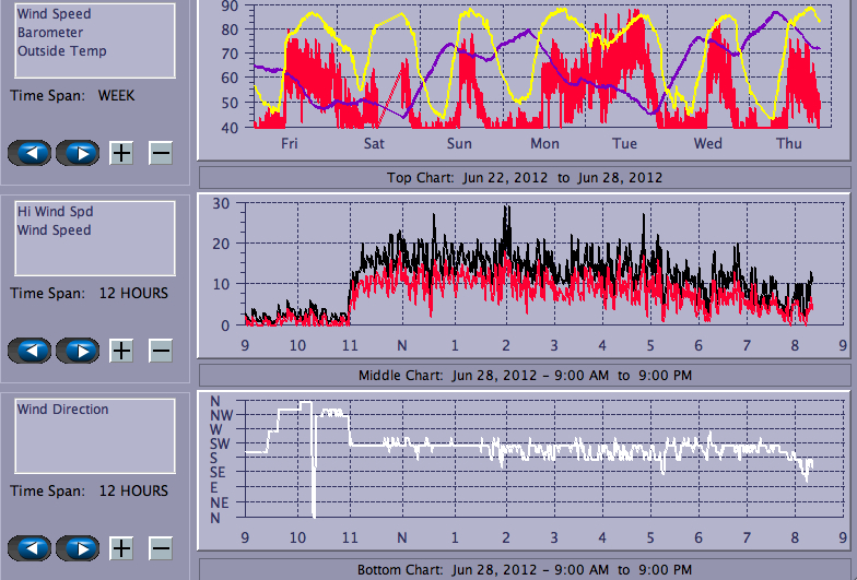 I think it was Tuesday 6/26 when i stuffed a jump, flew the kite back the other direction to get my board just in time to see Sherwin in the air as high as I have ever seen him. Can't put a # on it but it was huge. Landed and took off again just as high. Man. I would like to see Jim's wind graph from that day in particular....pretty sure you have been there everyday with other sailors.
