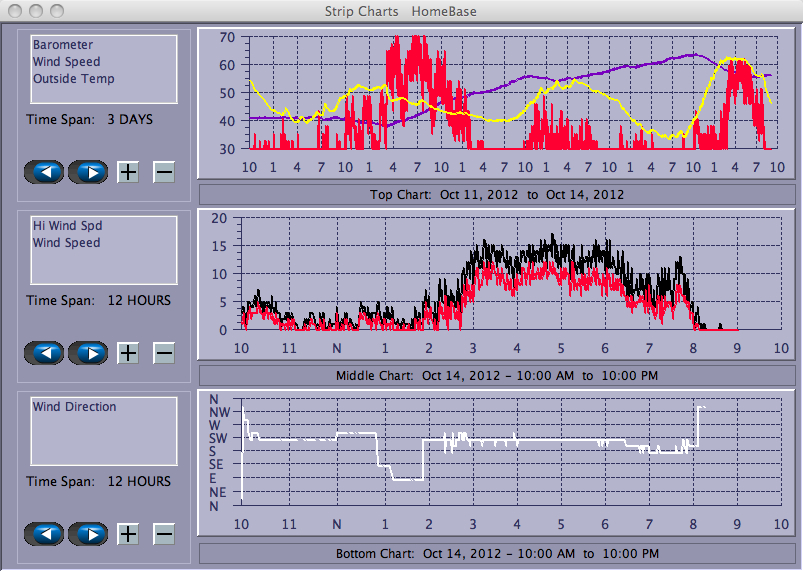 Beautiful late autumn day. The wind was a bit slow filling in and never got above about 15 Kt (at least at my weather station) but it was fairly smooth and strong enough that I was able to plane much of the time. Mike Hill reports a very pleasant session on his 12M kite.