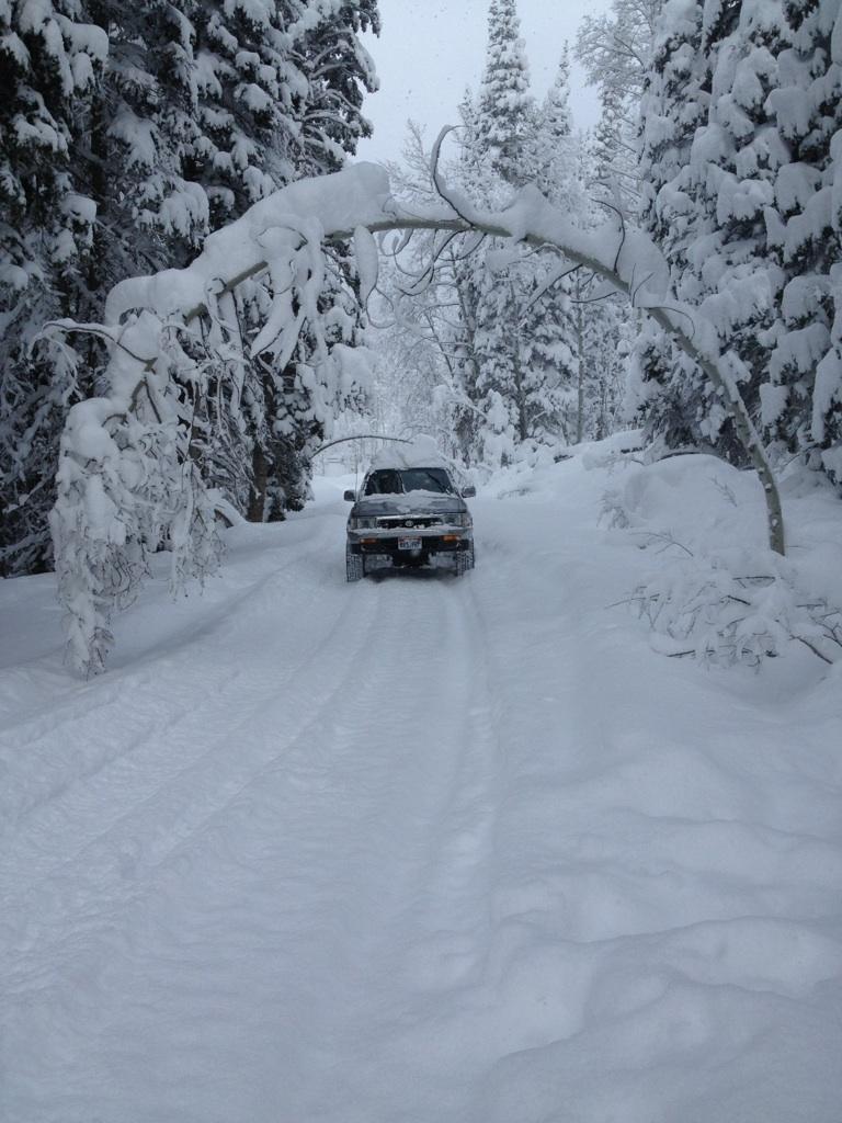 Pepe, Kevin and I made it about 2/3 the way up to lake creek when we came across a downed tree. There were about 3 feet of really light, fluffy snow even where we made it to. Kevin went up to the top with his sled and said there was plenty of snow up there. But before he got back down to us Tyler and Pete needed a hand digging out a bit further down the road from us. And by the time we got them out we'd all decided to try strawberry since the road was impassible.