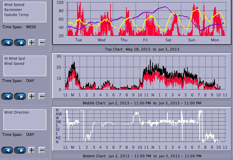 Surprise appearance of SW wind beginning about 10. Checked out Charleston Bridge, but with a somewhat more westerly direction than usual, the wind seemed to be having a hard time getting around the corner. Plus, the first reach out would have involved heading straight for the shallows at the North end of the lake. So, off to IB, where the wind did show more promise. By the time I got on the water at a little before noon, the wind was reasonably steady and strong enough that I was able to plane most of the time on a 7.0. George joined in a little later on his beautiful new 7.5.