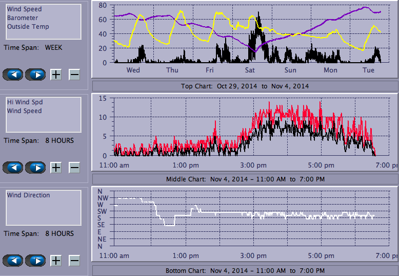 The wind, what there was of it, came up late and peaked below 15 MPH, but was relatively steady - ideal conditions for really big gear. No boats, making for clean (albeit small) swells. The water level continues to rise slowly, and the water temp is not yet life-threatening.