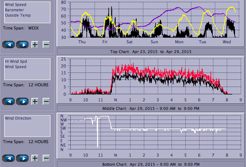 As usual, Craig nailed it; the wind did, indeed, come up just before noon, it was quite steady (for DC) and was (initially, at least) plenty strong enough for a 7.0. And it would have been possible to keep sailing until 5 or even 6, albeit with a somewhat larger sail.