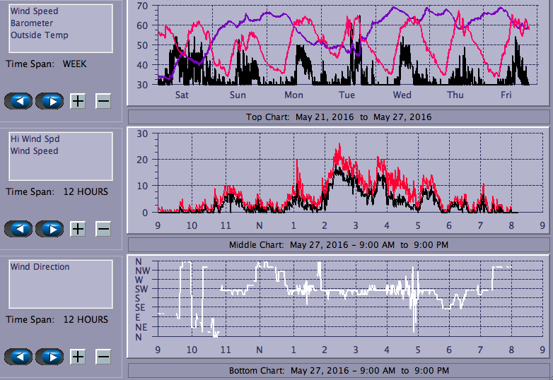 Pretty chaotic wind conditions as a series of impulses passed over. Things started looking halfway reasonable a little after 2. Even gustier than usual, however, and the wind direction kept getting more and more westerly.