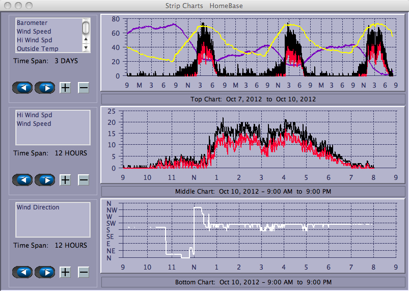 It was really very similar to yesterday which was the 9th not the 10th, Anyway, Started at 2:00 (just as Craig predicted) nicely powered on SS 12M RPM and Xenon Reyo. Wind was good for almost an hour and then it slowly died to nothing. About 5-6 kiters out and everyone came in. Waited for about an hour till 4:00 and I left but those remaining and some new arrivals all went out on 17's or so. At one time there were 4 or 5 17 M Zephyrs up. I watched from the rocks and again after about an hour, most came in as the wind dropped off. Don't know if it came back up. Nice while it lasted. Damn,that Craig is good at calling the wind
