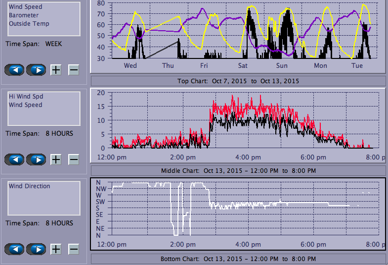 An overnight low of 30 and a predicted high of almost 80 suggested the possibility of a thermal, and sure enough, the wind kicked in a little before 3. Not a lot of wind, but enough to power planing rides on big gear. No motorboats at all!!