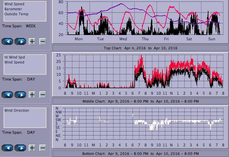 And indeed the rare early morning session did occur, peaking a little after 7 and fizzling out completely by 8. As far as I'm aware, nobody took advantage of it. Fortunately (and surprisingly) the wind returned and was gusting to 20 by noon. Fairly steady early on but became progressively gustier. The water level continues to rise slowly.