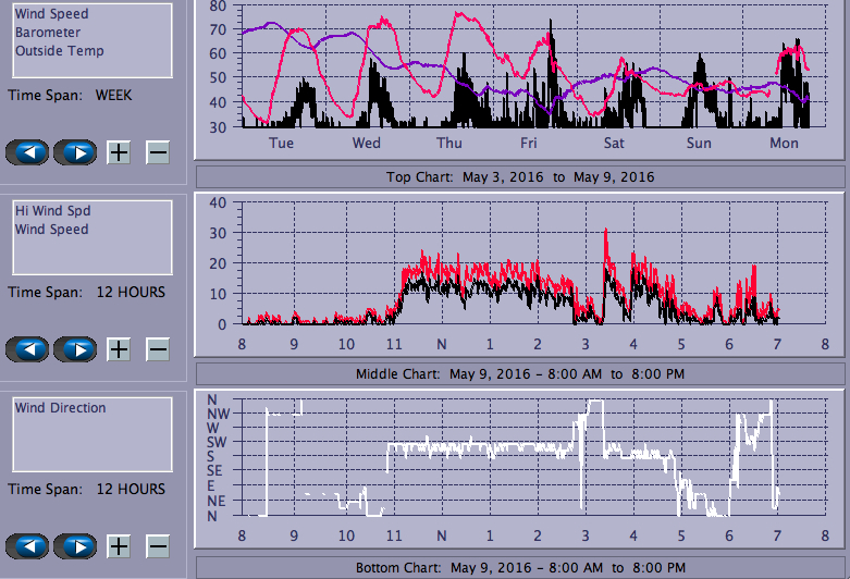 First stirrings at about 11, gusting into the low 20s by noon. About as much as I could handle with a 7.0 in the gusts and enough to stay on a plane most of the time between gusts.