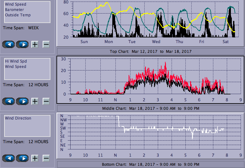 Finally a classic Spring day at Grants. When I got there the wind was already picking up dust off the road. On the water at 8:45 on 6.0 and wind reading 25G28. Perfect for screaming reaches into the SE corner. Took a short break at 10:00 and rigged the 5.2. By then it was 26G+30’s and had clocked south. I was tail walking for at least 10 yards every trip across. The little 86L Sonic race board, all 12 pounds of it, was willing to scream across the lake fast enough to handle the gusts or I would have been on the 4.7. Still, wind was as smooth as I ever sail in, especially during the 6.0 sesh. With only 3 mph between the average and gusts, that is as good as it gets. Usually a 6.0 sesh is 22G28 on the Grants meter. However, my freestyling buddies would have been on 4.2’s due to their +100L boards. Quit at 12:00 with a huge smile on my face but no arms left. Tons of fishermen and campers but all the campers were in the campground thank goodness. Temps started at 55 and ended near 70. The hot sailing made up for the frigid water.