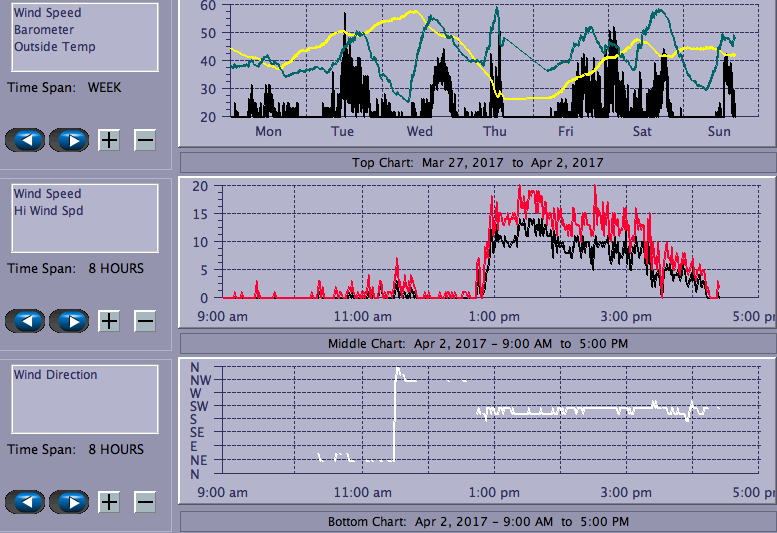 Gray, chilly, overcast day. NWS was calling for WNW, not a good direction at DC. Not much wind at all until a little before 1, when a breeze appeared out of the SSW, peaking at 20 by 1:30. Worth a look. The water level is as high as I've ever seen it, right up to the Jersey barriers. Still not much floating debris except for a small tree slowly making its way toward Midway. The wind was quite variable, but did provide some decent rides.