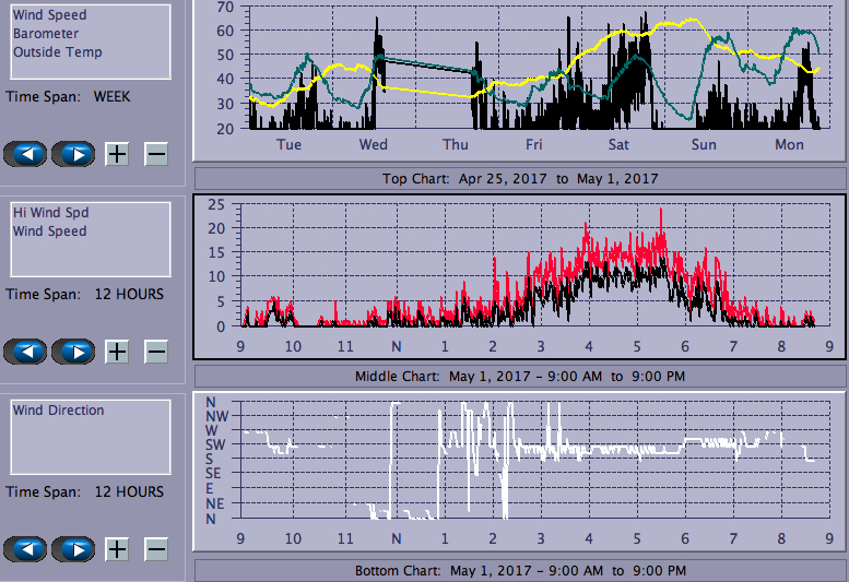 Wind, finally! So what if it teased most of the afternoon and didn't peak until 4, at least it was a chance to get back on the water. Sunny, with air temp in the low 60s and water in the low 50s. Moderately gusty until about 6, when it became more westerly and the gustiness increase. All in all, quite an enjoyable surprise session.