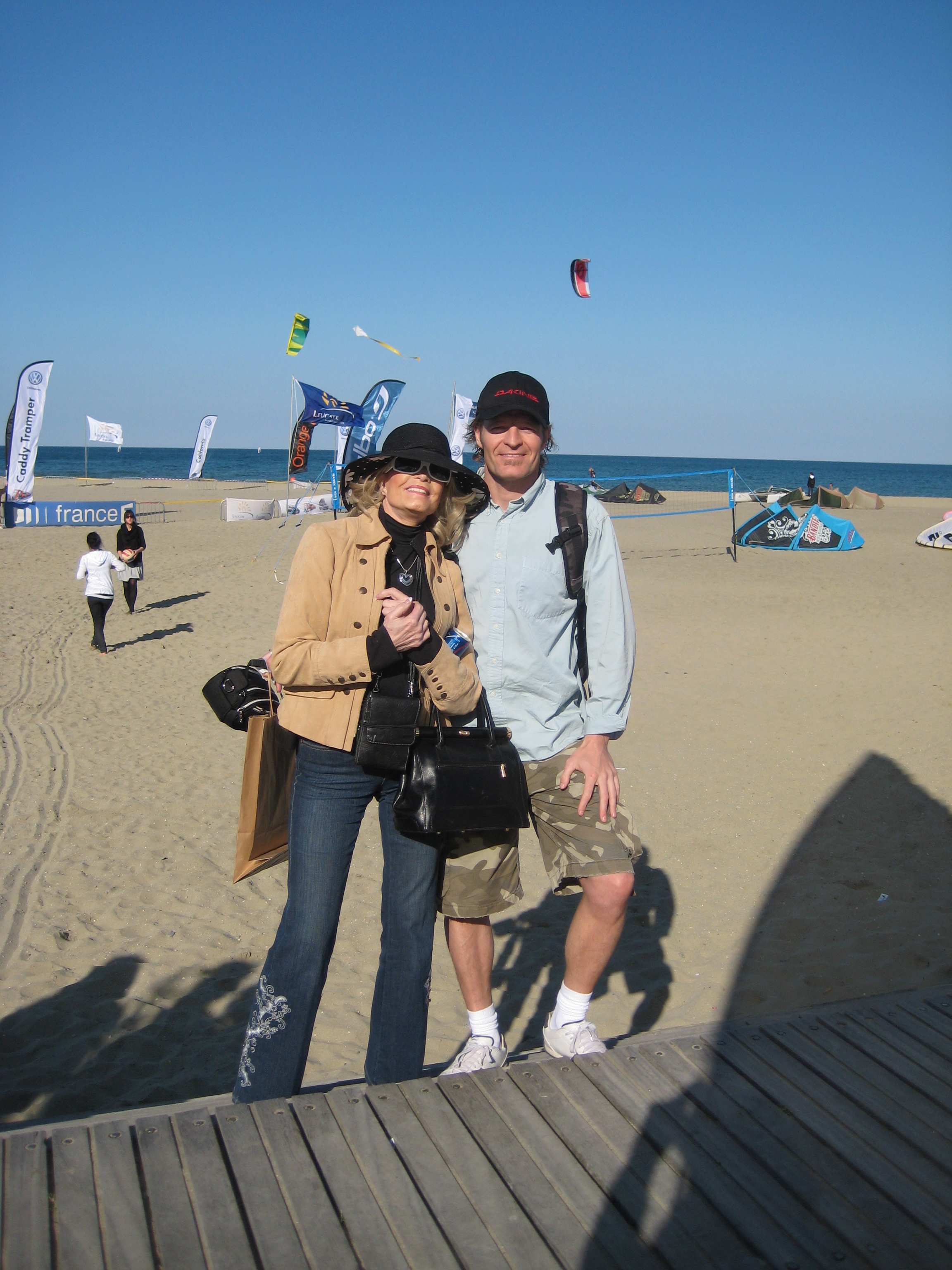 Well, the day I was there, we got there around 3pm and the competition was pretty much winding up and it was a kiting day. But they said that it blew pretty strong... That place is amazing... Yes, I stood on the wooden bleachers that are on the shoreline for flatwater... I can easily see where they can get some high speeds... I was going to sail but it was a little late and chilly... Plus we still had to get to Carcasonne, the only walled city in Europe I guess. My mom and I here. It was pretty awesome how integrated all the sports were at the event...