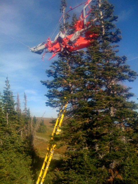 I hung, jumped, engineered, busted, ripped, event broke off 8 feet of adjacent tree top, but could not get this kite down. Auggie, sounds like if you get the ok to cut another tree down, a $300 discount on ozone sounds like a screaming deal. Marty, missed the opportunity to get your trimmer this weekend, let me know if you'll be up at PV, I can tborrow it then.