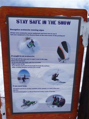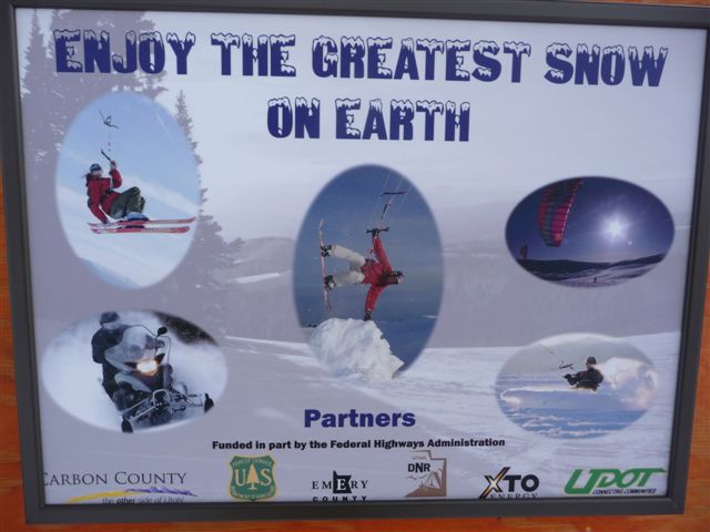 I am really happy to see it myself. The Forest Service of the Manti-La Sal district has erected a log post Kiosk at Skyline. It presents 3 posters, arising awareness for avalanche safety, general safety, and positive approaches towards working together with the user groups....