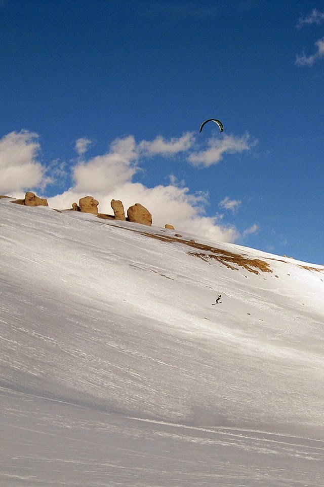 Saturday the clouds cam in, and we had to go lower to find kite spot. The 15M conditions were smooth and reminded me of kiting runs at a resort on the groomers. We may be snowed in Sunday. The plows don't run up here on the weekends. 1-2 feet in the forecast sat night. We may have to wait for the plows to get out of here on Monday.