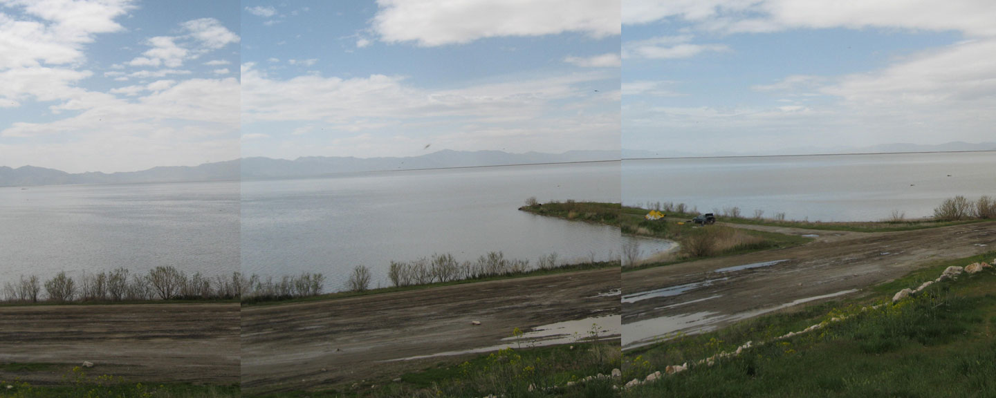 The wind was blowing great starting about noon so I thought I would give it a try. Willard Bay State park is full now which means almost no beach to launch from so I decided to try the bay on the west side of Willard bay. To get there, take the VERY BUMPY dirt road on the south side of Willard Bay and then go up the west side about half way. (Refer to our Google map of kiting locations) It took about 20 minutes just on the dirt road. It is about 3-4 miles.