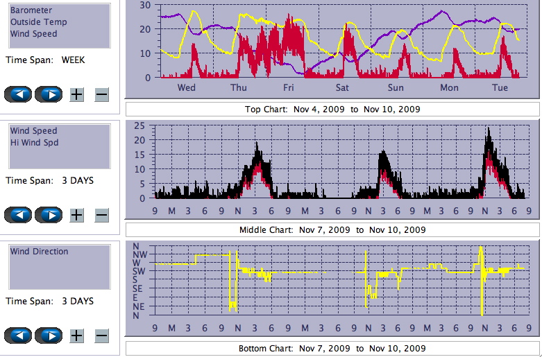 Bullseye! First hint of SW wind at 11:30, building rapidly to a peak at about 12:40, then relentlessly tapering off.