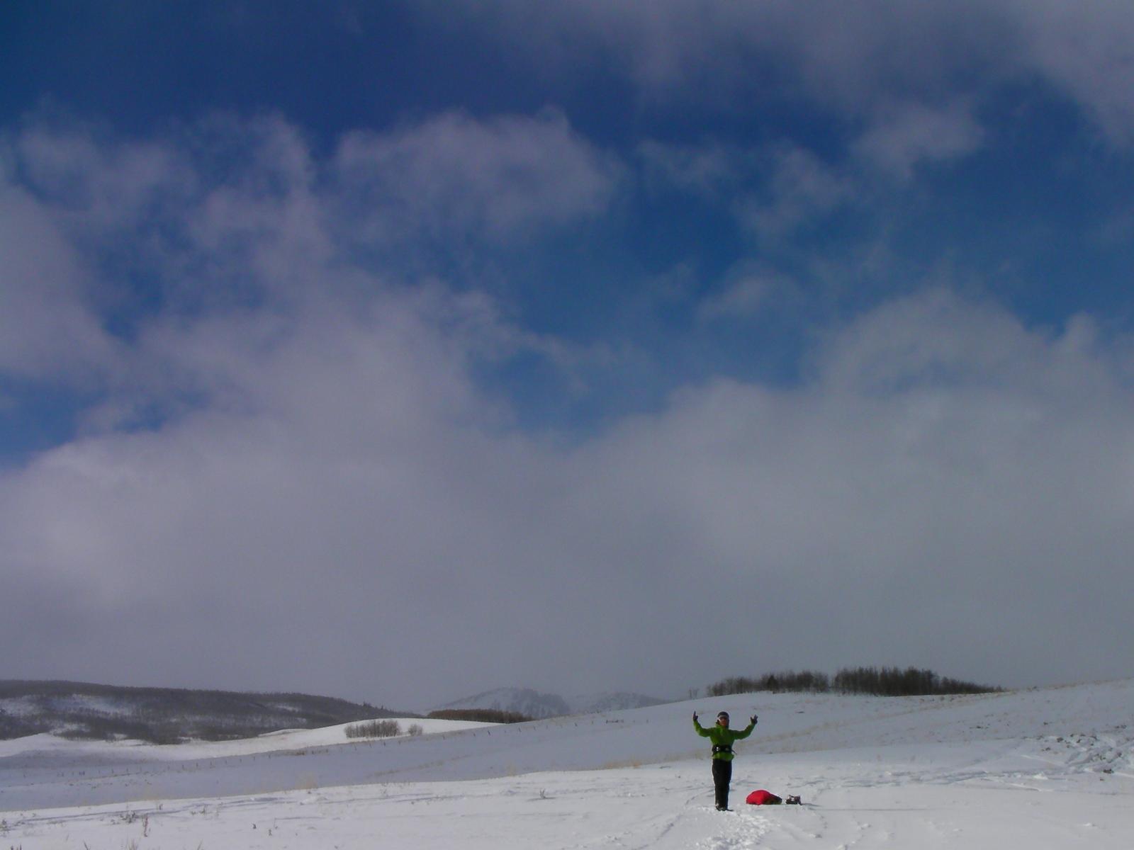 The wind was pretty good out of the north when we first started, but it only lasted about an hour. The snow wasn't so bueno. It was pretty sticky because of the warm temps and trying to get any speed up was a real workout. There's lots of sagebrush traps still and there really needs to be more snow out there. The best part of the day was the sled ride over from Blacksmith Fork. Its about 15 miles and most of the terrain will be really fun if it ever fills in.