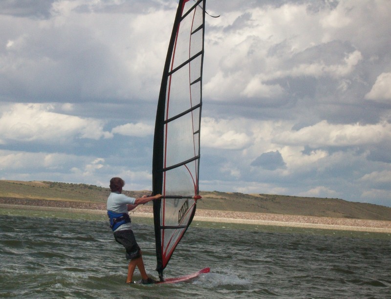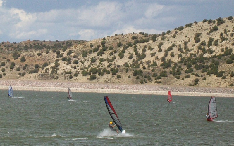 Thanks to Sarah for bring this all together again. Kudos to Rick for his crawdad cooking. Had to wait until about the 3rd batch to get a full plate. Kudos to Josh for getting Andy Brandt to stop by and to Josh for his Saturday morning clinic attended by many. Kudos also to Big Wave Dave for SUP board rescues of multiple blown down wind newbies and for hanging out across the little bay until he got a long enough puff of wind to get himself back on his kite. The beer drinkers at Jerry Giles trailer, me included, were cheering him on. He would get so close then the wind would let off and back to the other side he would go but finally his perserverance paid off. All in all a very fun weekend and a great time to get together with so many of the Utah Windsurfers.