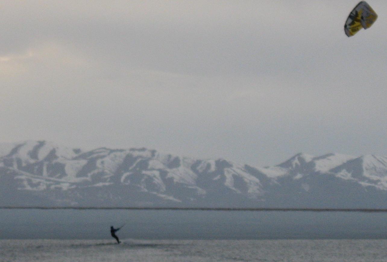 If you look just beyond where I'm at, you'll notice a change in the water consistancy. That is where the ice begins. I got within about 5 to 10 feet and then though the board wouldn't fare well on the ice so I turned and went the other way.