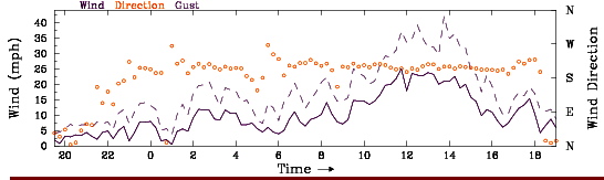 Wind! Finally some wind!! Apparently a weak cold front sneaked through the state, providing DC with the first real wind in a week. Unusually (even for DC) gusty and shifty wind - periods of near dead calm punctuated by short, sharp gusts into the 20s. But it sure beat the almost total lack of wind we've had up here for the 5 days.